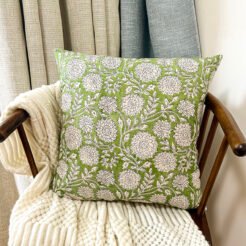 New Arrival 100% Cotton Vintage Floral Printed Throw Pillow Cover Green Cushion Cover for Sofa Home Décor