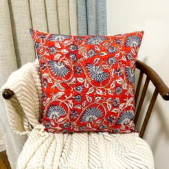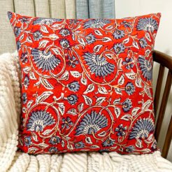 - Item: 100% Cotton Red Floral Printed Throw Pillow Cover