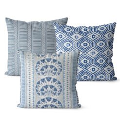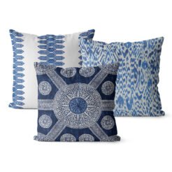 Wholesale Navy Blue Chinoiserie Cushion Cover Ikat Tie Dye Sofa Decorative Throw Pillow Cover Farmhouse Pillow Case Custom Size